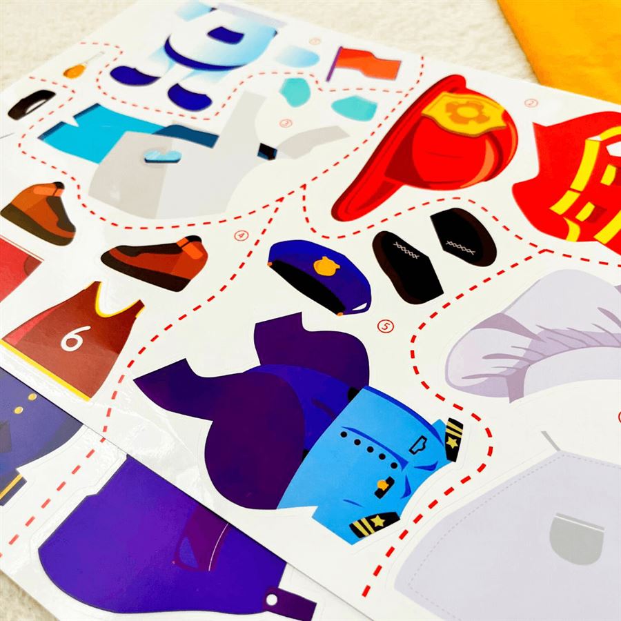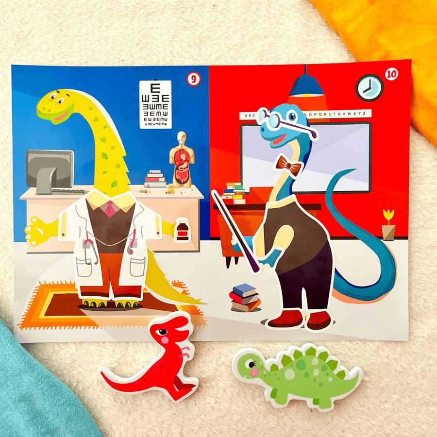 Sada s nálepkami Obleč si dinosaury pomůže předškolákům při objevování různých druhů povolání, a to prostřednictvím veselých dinosaurů a pestrobarevných nálepek, kterými dotvoří jejich nápadité oblečení. Mladším předškolákům pomohou při nalepování průvodní čáry, které naznačují, na které místo patří jednotlivé nálepky.