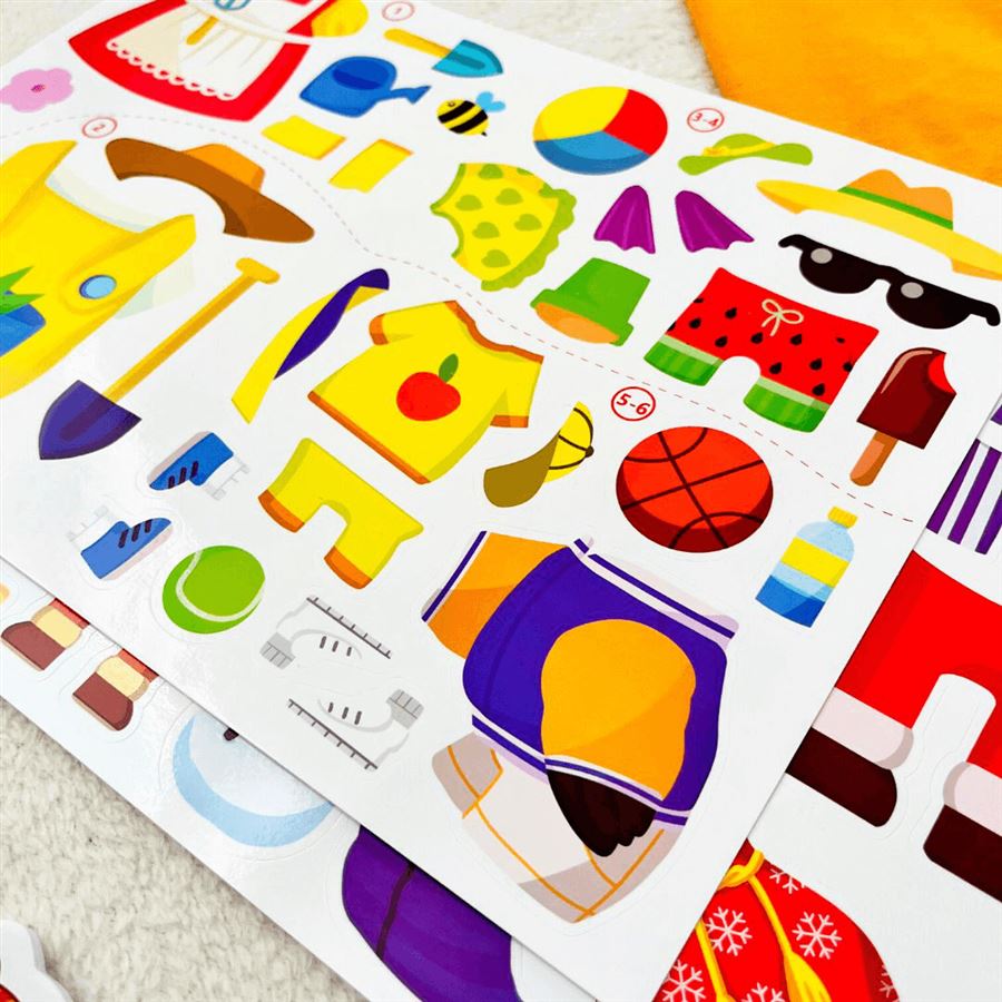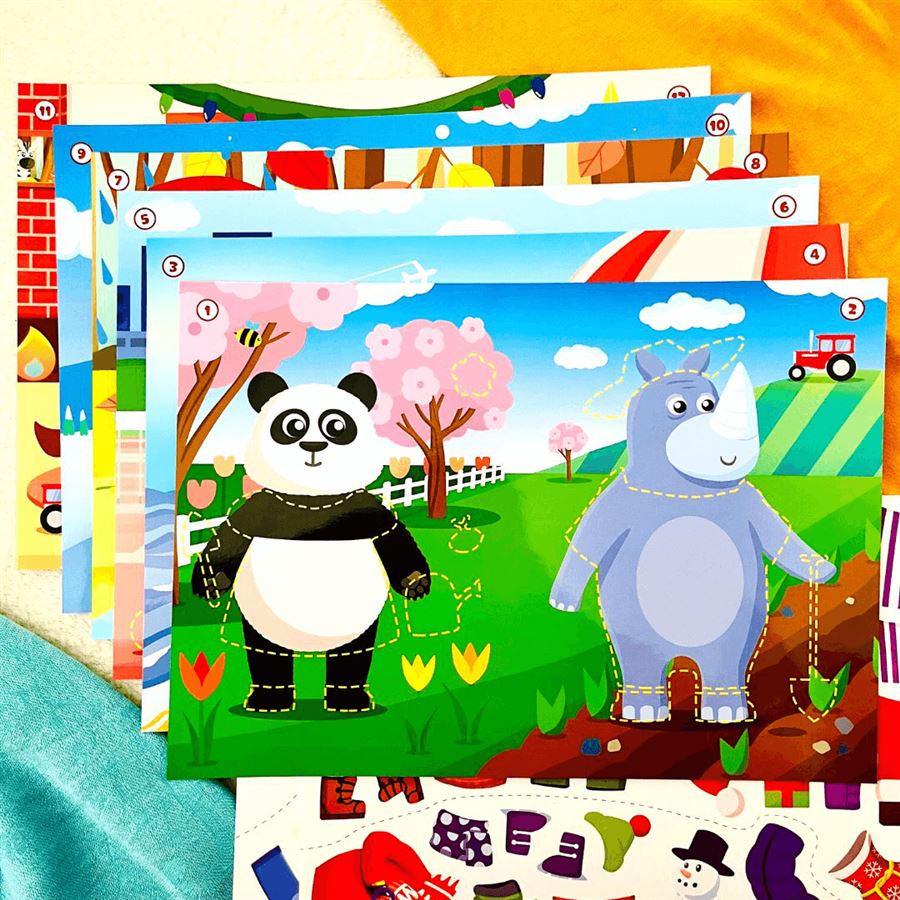 Sada s nálepkami Obleč si zvířátka pomůže předškolákům při objevování ročních období, a to prostřednictvím veselých zvířecích kamarádů a pestrobarevných nálepek, kterými dotvoří jejich nápadité oblečení. Mladším předškolákům pomohou při nalepování průvodní čáry, které naznačují, na které místo patří jednotlivé nálepky.