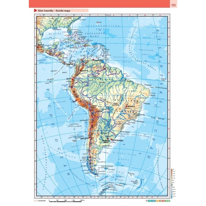 Mapovou část každého světadílu uvozují fotografické stránky se stručným charakterizujícím textem a s tabulkou geografických údajů. Části věnované jednotlivým světadílům obsahují podrobné obecně zeměpisné mapy, doplněné o rozšiřující tematické mapy. Zeměpisné učivo je doplněno také o historické mapy stěžejních etap vývoje jednotlivých kontinentů, umožňující využití také v mezipředmětové výuce.