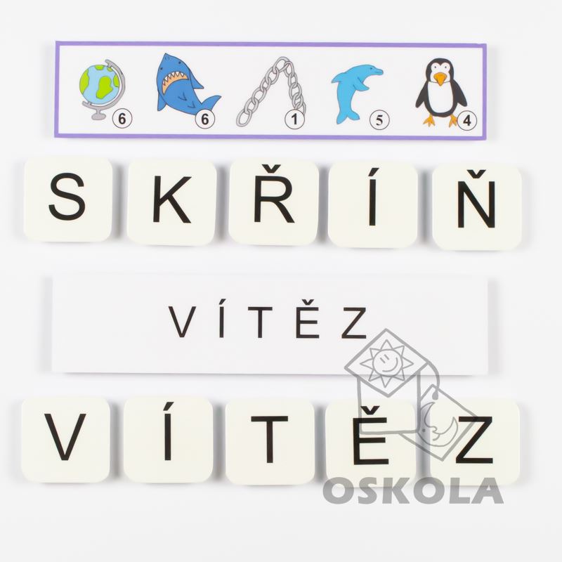 Tato sada obsahuje slova z 5-ti písmen a velká tiskací písmena.