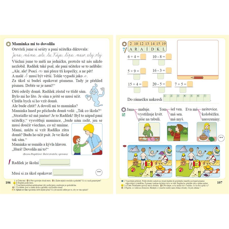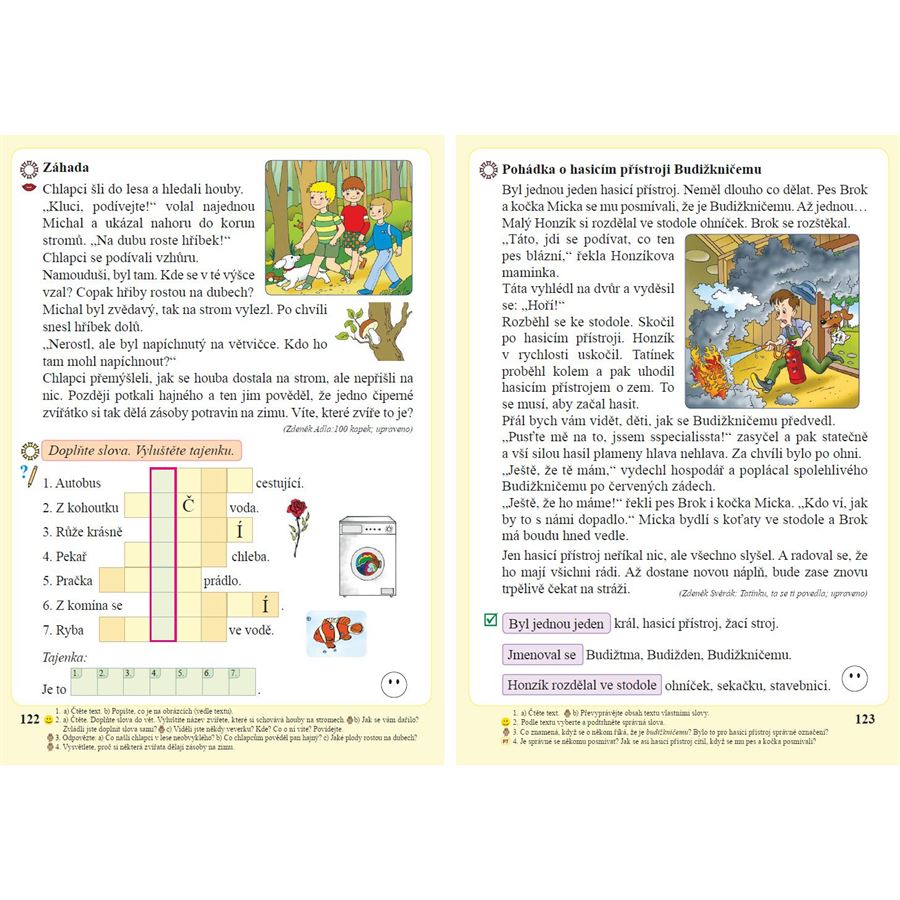 V učebnici nechybí ani hádanky, čtyřsměrky, doplňovačky, rébusy, hry a soutěže.