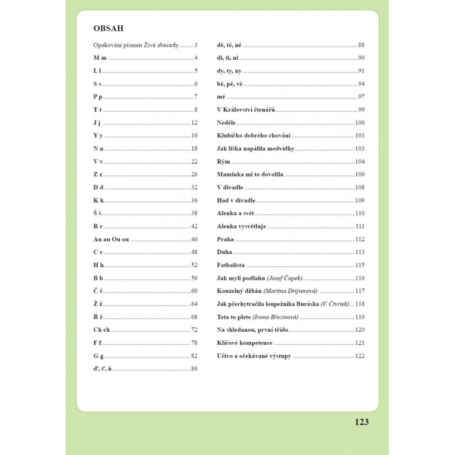 Učebnice přímo navazuje na Živou abecedu s kocourem Samem. Průvodní postavou je i zde kocour Sam, který doprovází Alenku a Michala. Kocour Sam opět odměňuje děti sluníčky.