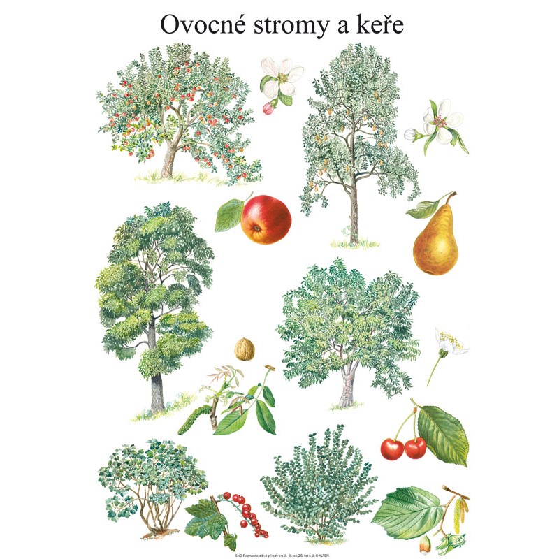Listnaté stromy; Jehličnaté stromy; Ovocné stromy; Savci; Potrava savců, Ptáci;