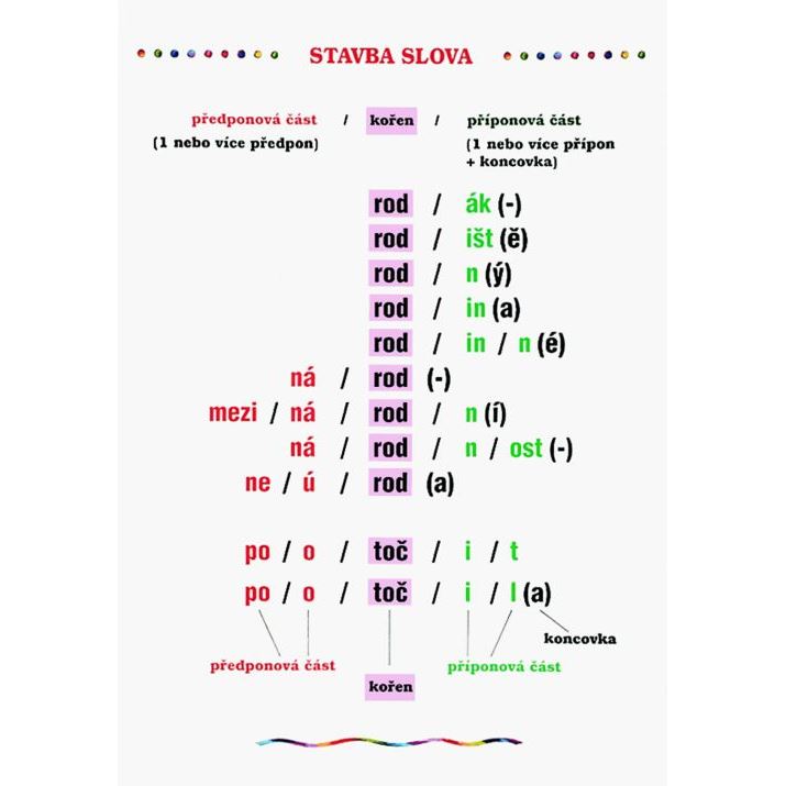 Oboustranná nástěnná výuková tabule objasňující stavbu slova z jednotlivých slovotvorných částí.