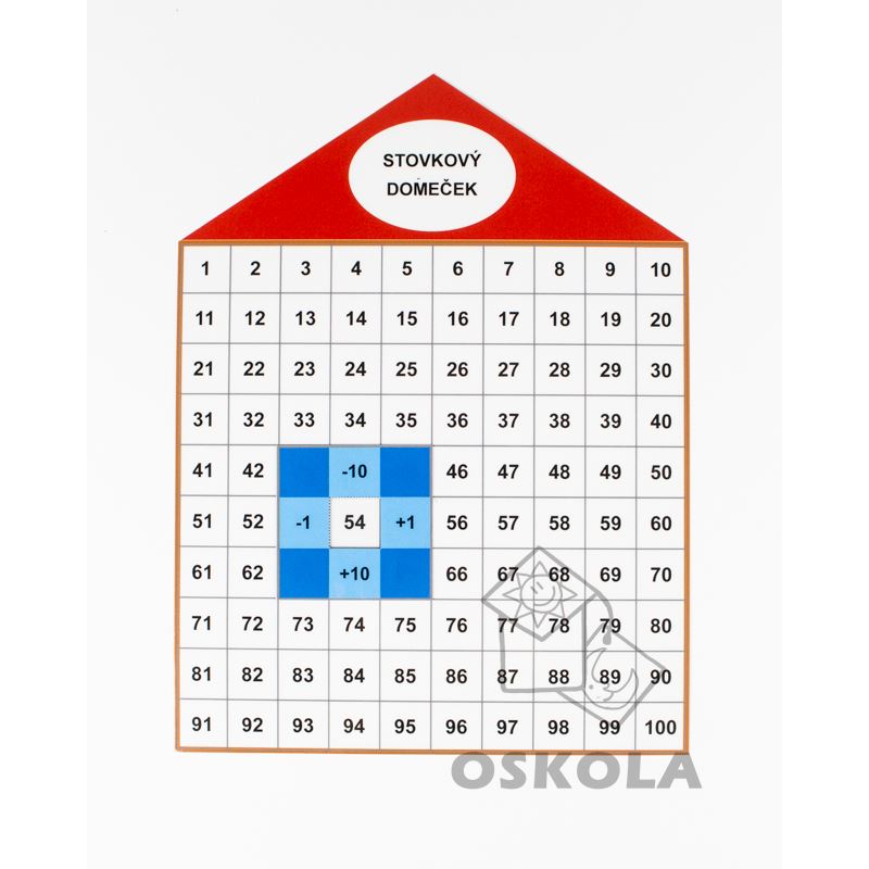 Zalaminovaný domeček slouží k osovojení čísel do 100 a k orientaci v číselné řadě do 100.