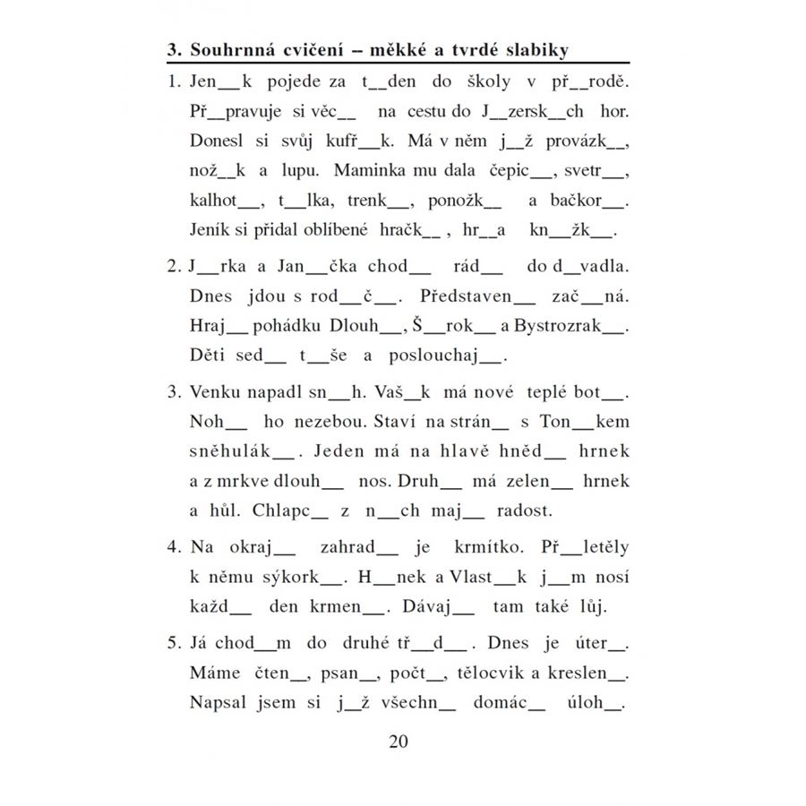 Formou zábavných cvičení založených na vědomostech dětí probírá učivo mluvnice z 1. pololetí – pojmy věta, slovo, slabika apod. Motivačním prvkem jsou vystřihovací sluníčka, která žáci za odměnu nalepují do sešitu.