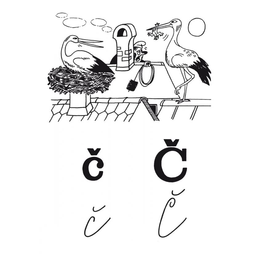 Každá strana je vždy vyhrazena pro nácvik jednoho písmene.