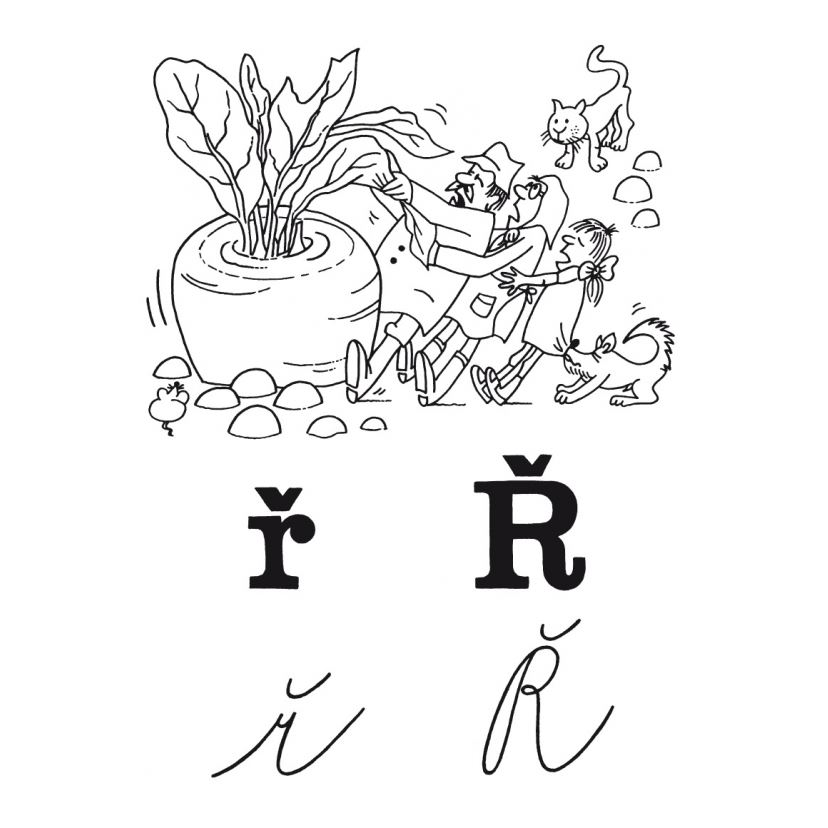 Vzhled stany: Černobílý obrázek, který znázorňuje slovo na dané písmeno – např. R – ryba (obrázek je možné vymalovat) a dále pak všechny čtyři jeho tvary – r, R, r, R.