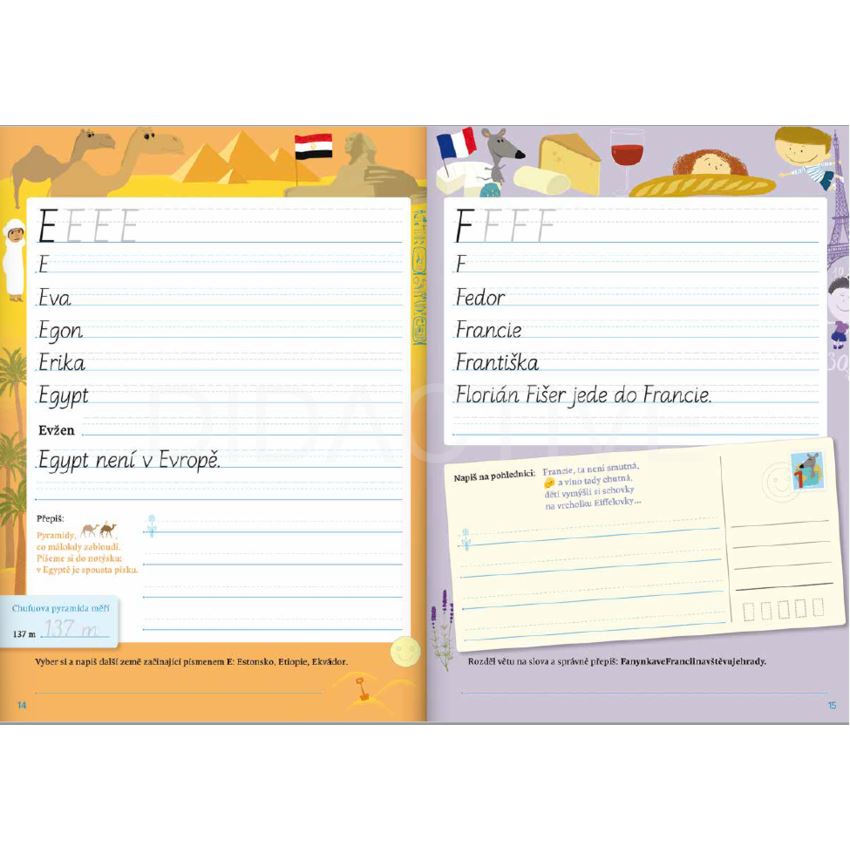 Dva sešity písanky k nácviku písma Comenia Script. Písanka je pojatá jako cesta kolem světa. S každým písmenem děti navštíví jednu zemi, která se váže k jednomu písmenu.