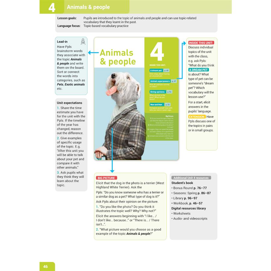 Kromě tipů na doplňkové aktivity v hodině a úloh pro víceúrovňové třídy nabízí možnost využít detailní plány vyučovacích hodin ke každé výukové lekci.