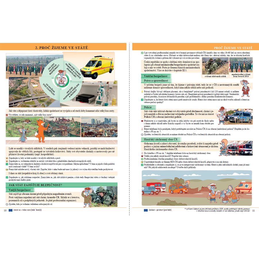 V prvním z nich si žáci si rozšíří znalosti o způsobu řízení našeho státu, o volbách, o významu státu pro jeho obyvatele, např. při obraně státu či při řešení krizí. Dozvědí se, jaká máme jako občané práva a povinnosti a co je podstatou občanské společnosti. Samostatná část bude věnována mediální výchově a kritickému myšlení.