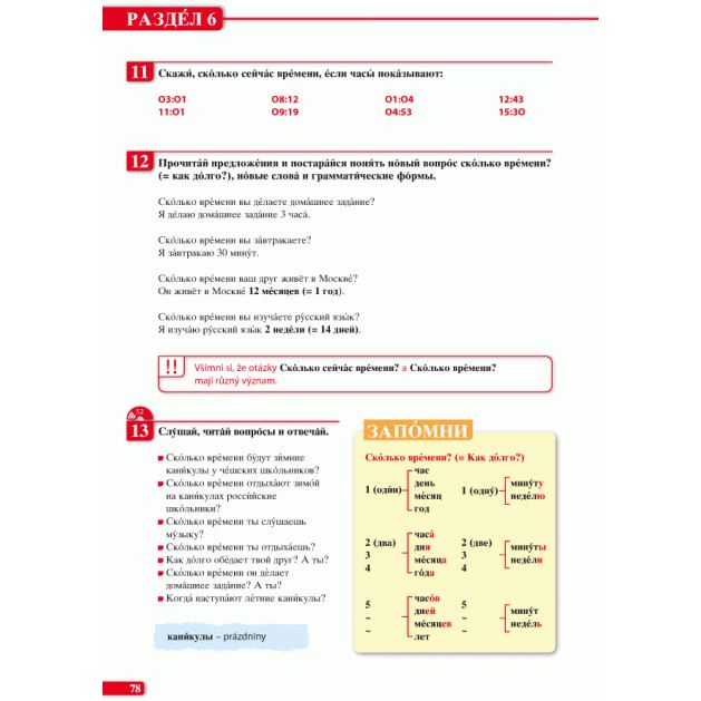 Řada učebnic VREMENA je určena studentům středních škol začínajícím výuku ruského jazyka. Vede postupně k úrovním A1, A2 a B1 Společného evropského referenčního rámce. Úroveň A1 a A2 lze použít pro výuku žáků a studentů na 2. stupni ZŠ a v odpovídajících ročních víceletých gymnázií. Zaručuje procvičení všech čtyř jazykových dovedností. K dispozici na našich webových stránkách bude zdarma ke stažení rusko-český a rusko-slovenský slovníček obsahující slovní zásobu, která se objevuje v učebnici a pracovním sešitě, přehled gramatiky a nahrávka.