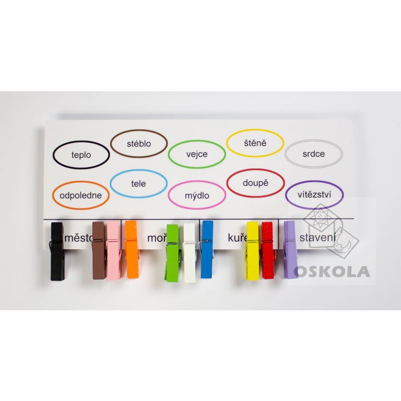 Doplňovačky, diktáty a další pravopisná cvičení se někdy pro děti stávají naprosto nezajímavými a nezáživnými. Naše sady Doplňovačky s barevnými kolíčky mohou velmi zábavnou formou procvičovaní znalostí českého jazyka ulehčit.