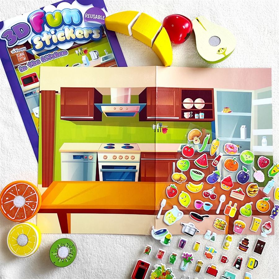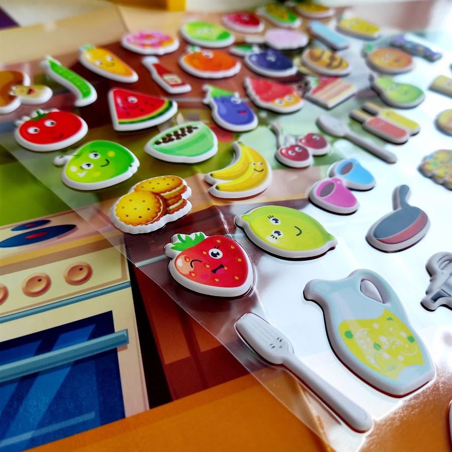 Dopřejte dětem zábavu, která nekončí, a rozvíjejte jejich představivost díky 3D nálepkám – inovativní novince se znovupoužitelnými nálepkami v provedení – Zábava v kuchyni!