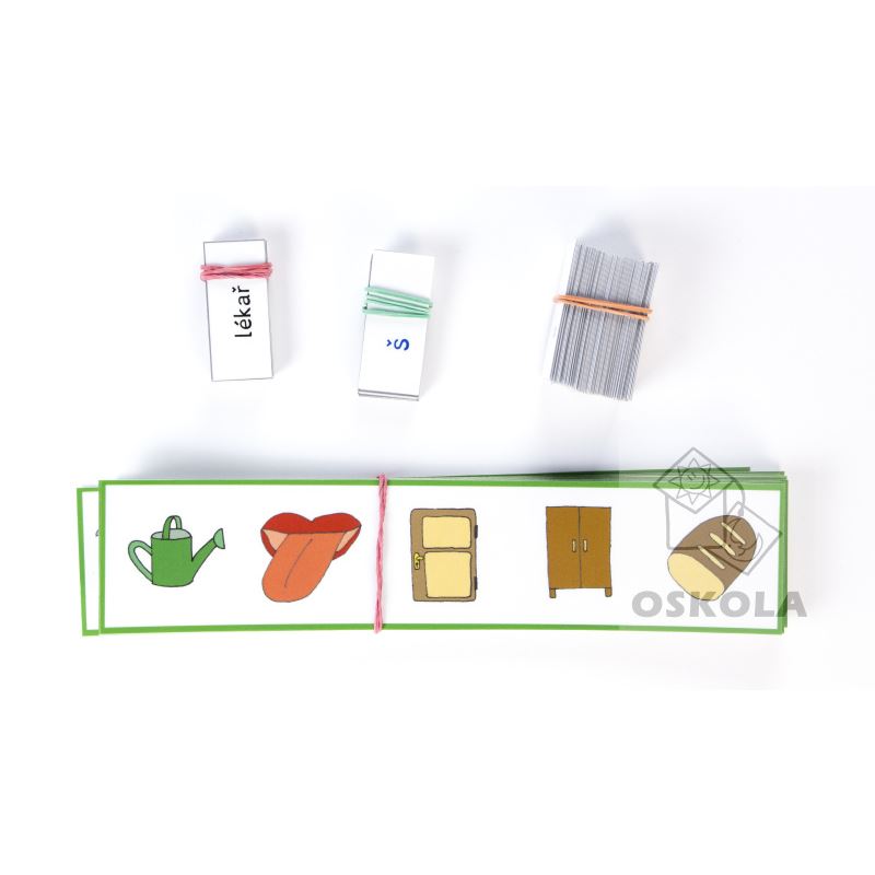 V balení najdete 21 velkých kartiček = zašifrovaných slov. Úlohou dítěte bude tyto slova v několika jednoduchých krocích rozšifrovat. Nejdřív pojmenuje obrázky, vyhledá psací podobu slova a pak se šifra objeví. Vhodné jako pomůcka / motivace ke čtení slov.