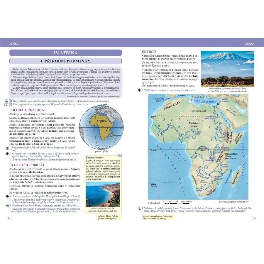 Text doplňuje velké množství map, které pomáhají žákům orientovat se v prostoru.