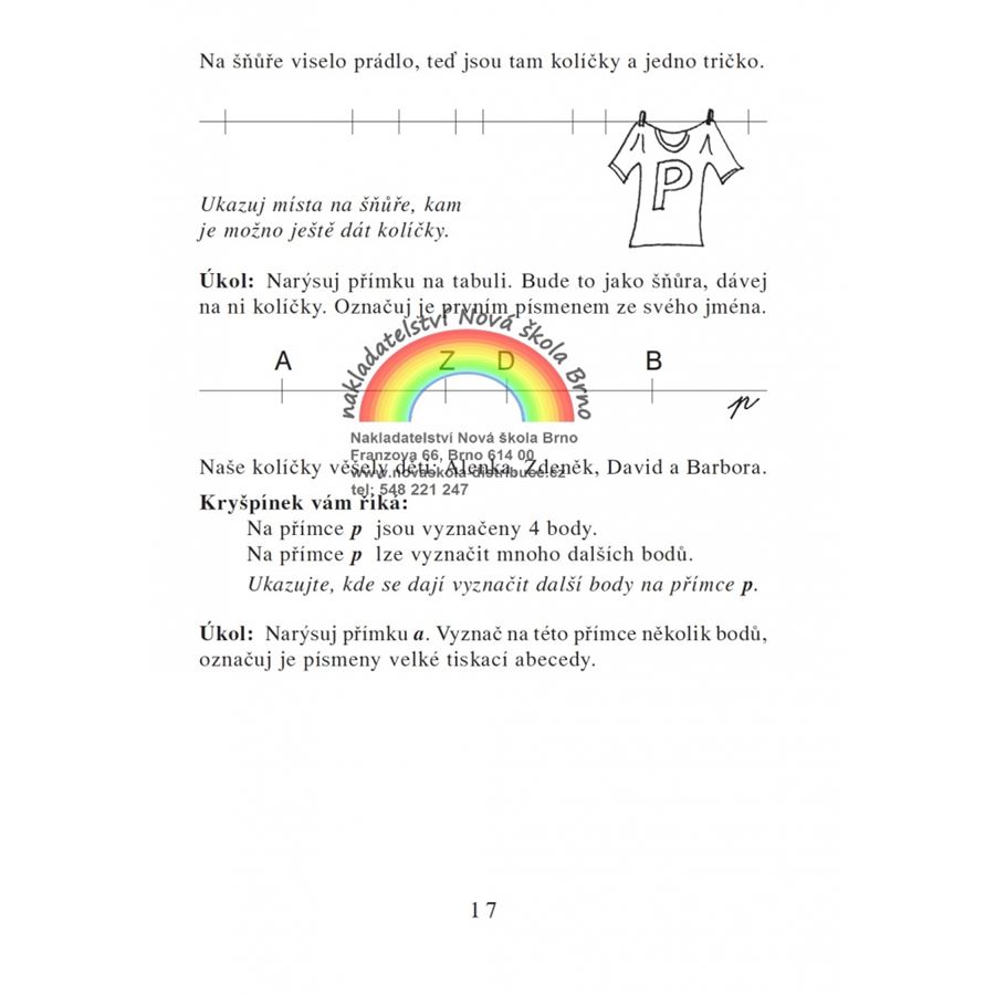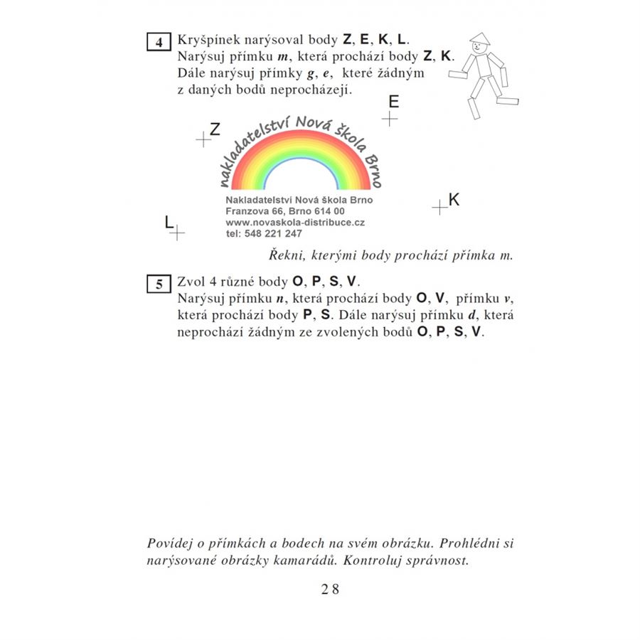 Pracovní sešit se zaměřuje na poznání základních geometrických objektů (bod, přímka, úsečka). Srozumitelnou hravou formou s obrazci a tělesy dítě pronikne snáze do učiva geometrie.
