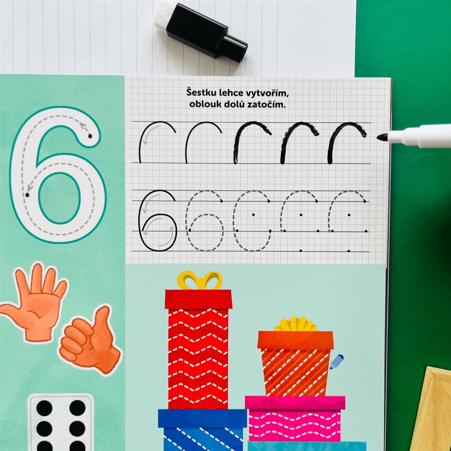 Milým bonusem jsou krátké veršovačky (Oblouk čárkou zakončím, číslo 2 si nakreslím). Závěrečná dvoustrana patří číselné hře.
