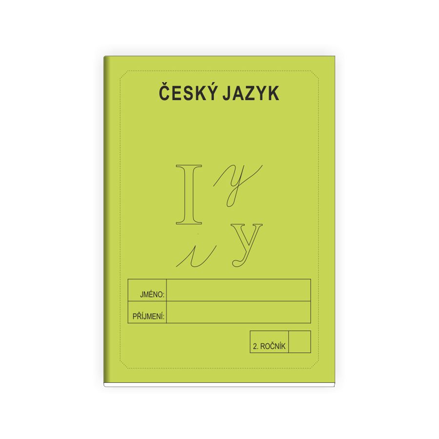 Školní sešit obsahuje předlohu psacích a tiskacích písmen abecedy, stránky s řádky určené pro opisy, přepisy a diktáty.