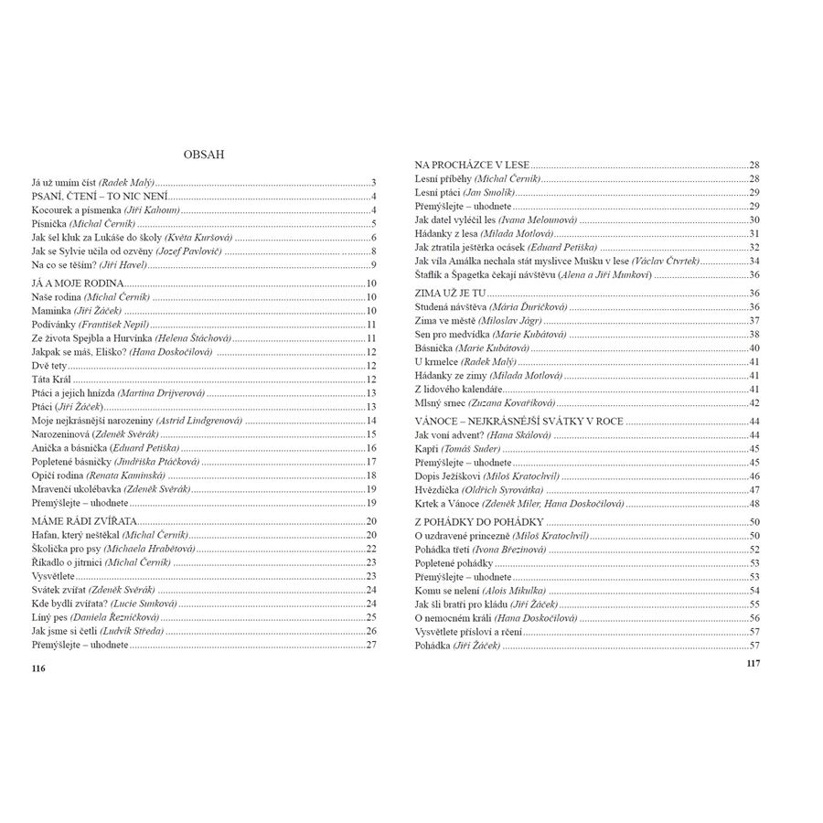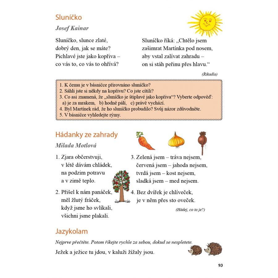 Hlavním cílem je vzbudit v dětech zájem o literaturu a poutavými články a úkoly je motivovat k další četbě. Každá literární ukázka je doplněna otázkami a úkoly směřujícími k rozvoji čtenářské gramotnosti dětí. Texty jsou voleny tak, aby zahrnovaly všechny literární žánry přiměřené dané věkové skupině a aby zároveň korespondovaly s učivem probíraným v hodinách prvouky. Na znalosti z prvouky je současně zaměřena i většina mezipředmětových otázek. Zařazeny jsou rovněž otázky a úkoly zacílené na etickou výchovu žáků. Stručné informace o nejzákladnějších pojmech z literární teorie nebo tematické zajímavosti k ukázce přibližuje krátký encyklopedický výklad uvedený symbolem sovy. Dále v čítance najdete hádanky, náměty na skupinové úkoly a hry na povolání, kde si žáci jedno zvolí a plní s ním spojený úkol. Na konci učebnice najdete řešení hádanek a vybraných otázek a úkolů.