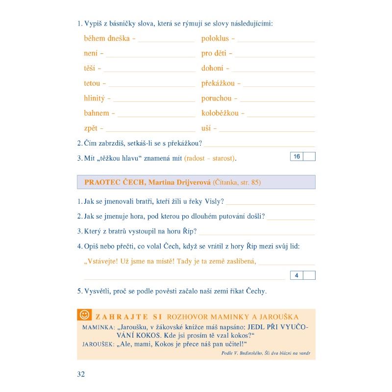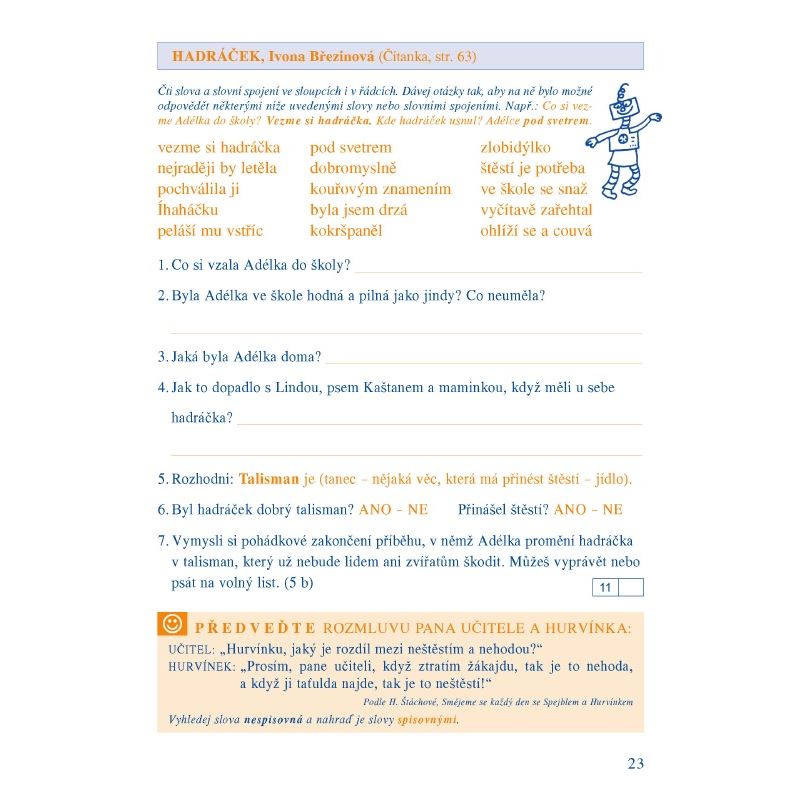 Pracovní sešit k Čítance 2/2 svým charakterem (podobně jako první díl) poskytuje možnost rozvíjet klíčové kompetence, činnostními prvky ve výuce umožňuje postupně ovládnout prakticky zaměřené očekávané výstupy RVP ZV. Obsahuje tvůrčí úkoly ke všem textům z Čítanky 2/2